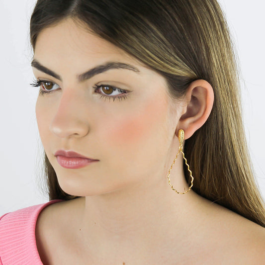 O brinco gota ondulada é uma peça marcante que combina elegância e movimento em um design moderno. Seu formato fluido cria um visual sofisticado, ideal para valorizar qualquer produção com estilo e personalidade. • Design orgânico com formato de gota ondulada elegante• Banho Ouro 18K com brilho intenso e acabamento...