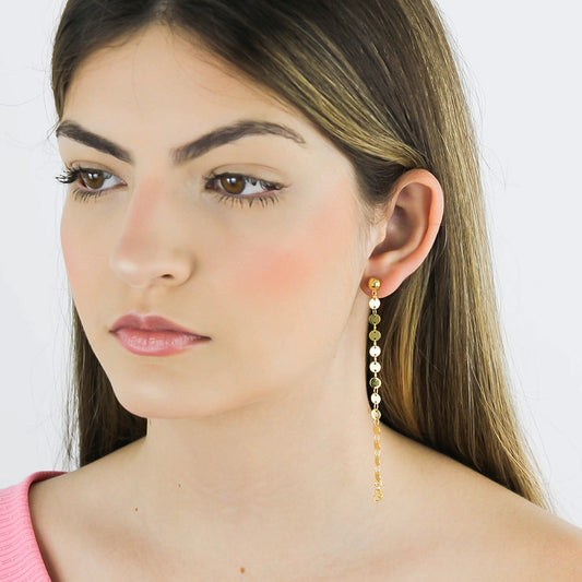 O brinco elos com chapinhas combina movimento e brilho em um design moderno que valoriza o visual. Os elos interligados com pequenas chapinhas criam um efeito delicado e elegante que destaca o rosto com sofisticação. • Design com elos e chapinhas que criam movimento elegante• Banho Ouro 18K com brilho...